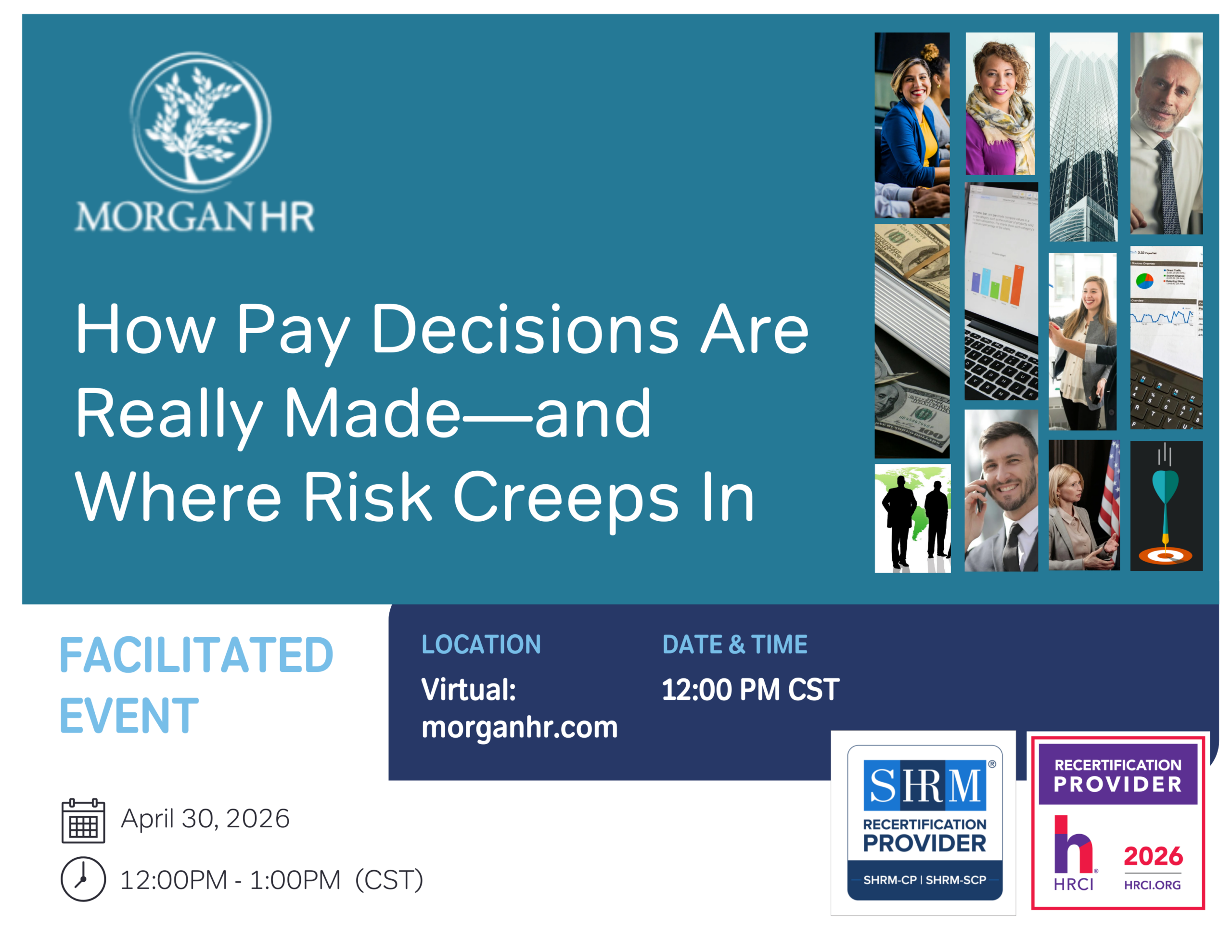 MorganHR is recognized by SHRM and HRCI to offer professional development credit. Participation in this program qualifies for 1.0 SHRM Professional Development Credit (PDC) and 1.0 HRCI recertification credit.