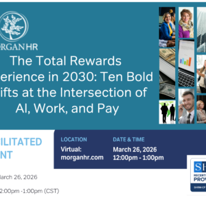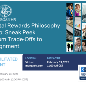 MorganHR Roundtable Reimagined Survey Results: Top 10 HR Questions & Answers Built from participant-submitted questions in the MorganHR Roundtable Reimagined survey, this session offers a sneak peek into the themes, tensions, and priorities emerging across HR and compensation leaders as they plan for the year ahead. Rather than focusing on individual answers, the session highlights the most common questions, the range of responses they [...]Read More... from Total Rewards Philosophy Lab: Sneak Peek From Trade-Offs to Alignment Strengthening Total Rewards Philosophy in a Changing Business Environment 17 Mar 11:00 am - 12:00 pm Virtual / Zoom