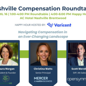 Join us for the Nashville Compensation Roundtable—an engaging, in-person experience designed for compensation professionals looking to connect, learn, and explore what’s shaping the future of pay. This session brings together leaders across salary, equity, and incentive design to unpack how compensation is evolving in an ever-changing landscape. Through a dynamic panel discussion and interactive breakout [...]